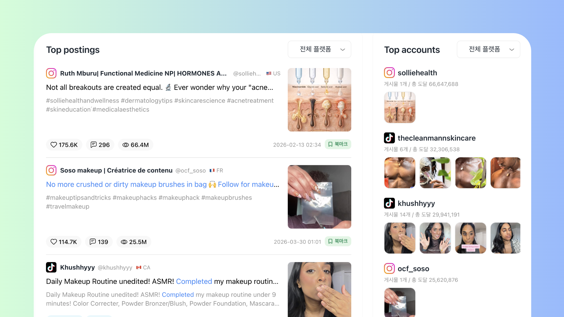 특정 브랜드의 소셜 활동이나 그들이 협업한 인플루언서가 궁금하다면?