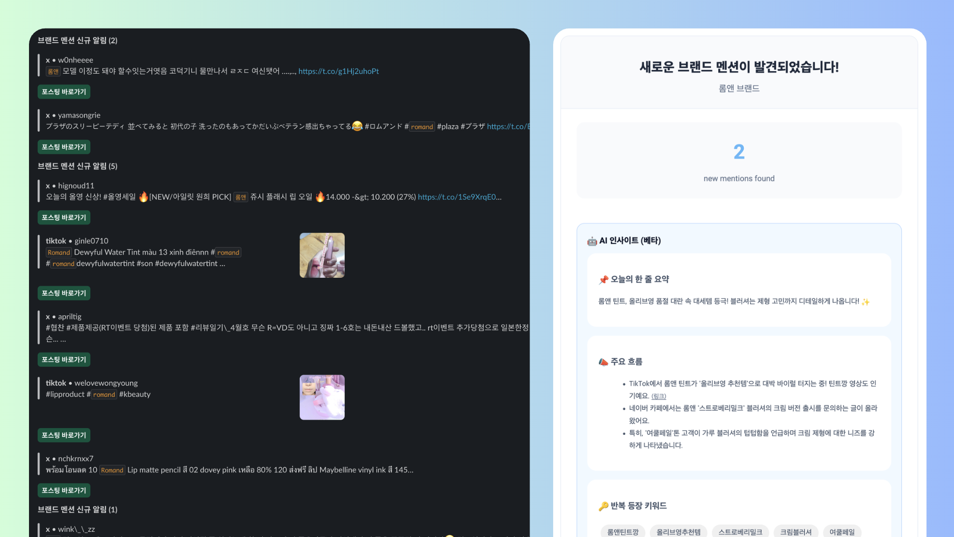 일간, 주간 요약과 주요 멘션들을 빠르게 파악하실 수 있어요.
