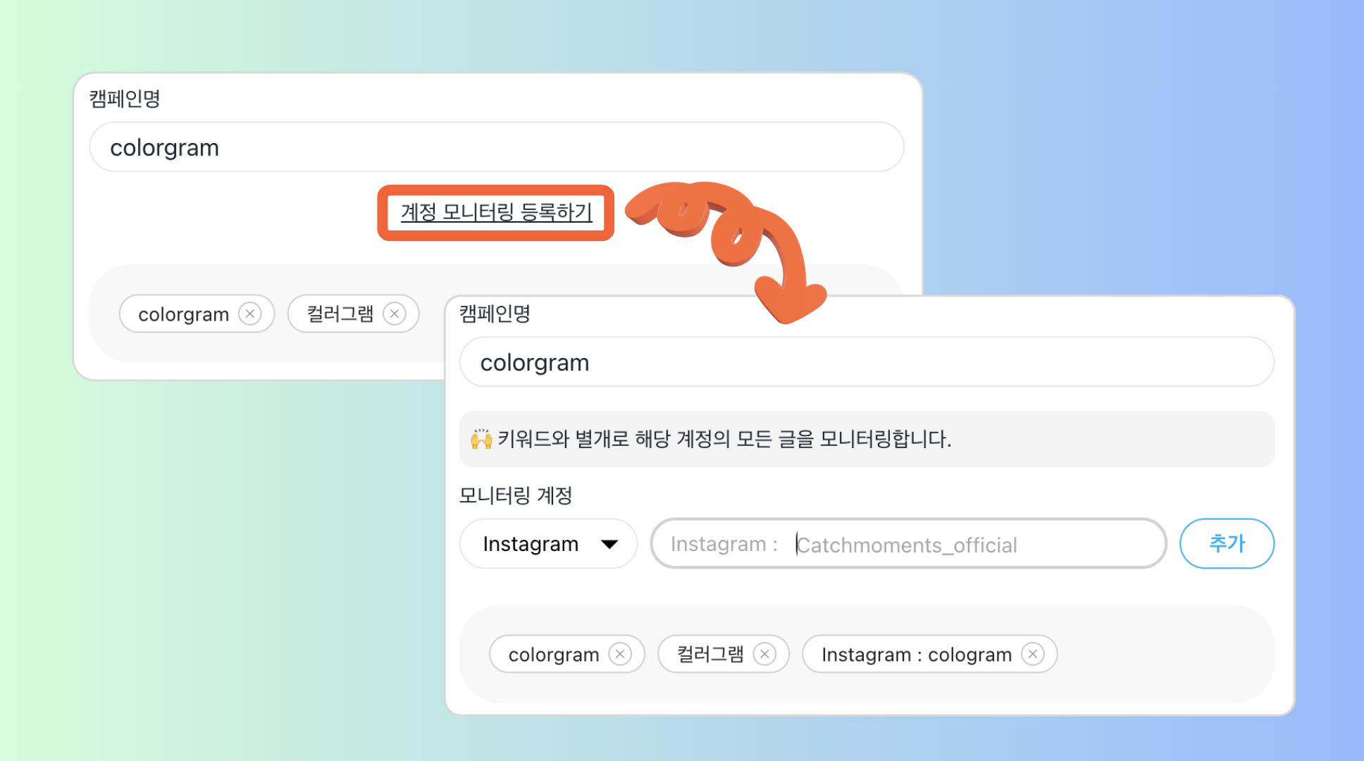 키워드 모니터링 메뉴에서 키워드를 등록하고,